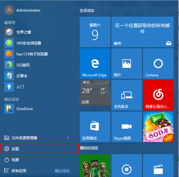 第一步:首先打开开始菜单栏界面,点击设置选项。