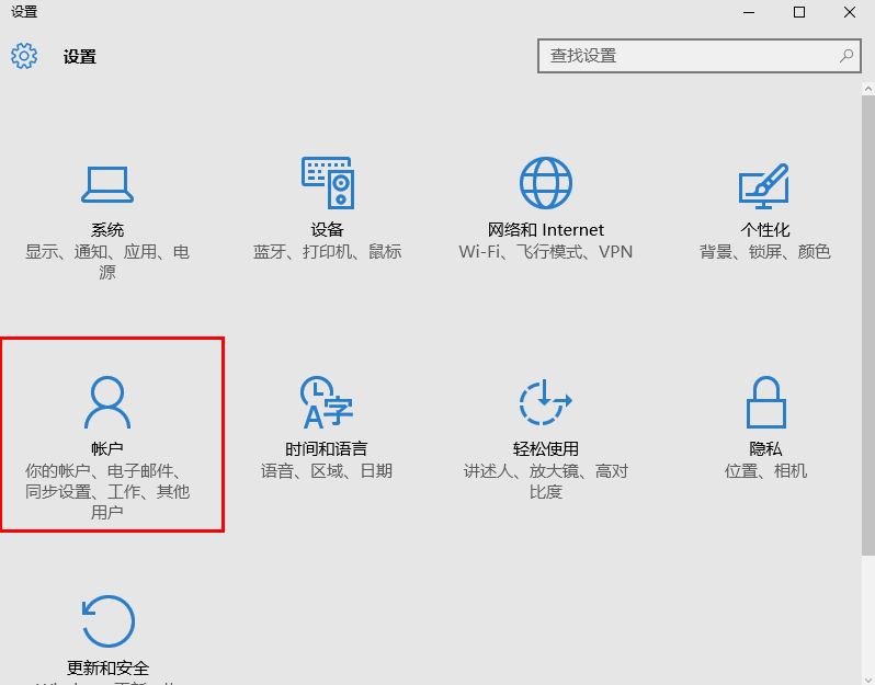第二步:在设置界面找到的账户选项。
