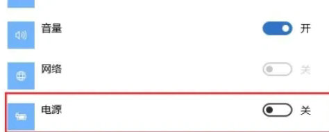 3、将电源的这一项选择【关】,就可以隐藏电池图标啦