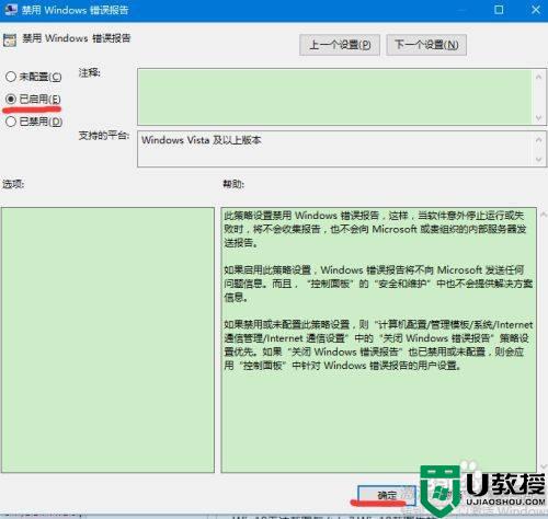 3、选择“已启用”;