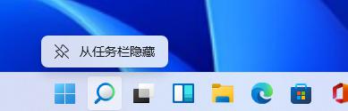 6、当然还有更简单的方法,我们直接右键点击搜索图标,再点击弹出来的“从任务栏隐藏”的选项也可以把它隐藏掉。