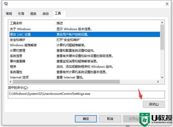 3、然后在打开的页面中,点击更改UAC设置,点击启动,如下图所示。