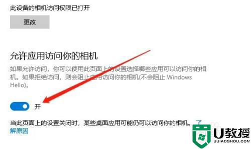 3、在打开的摄像头界面中,打开开关即可,如下图所示。