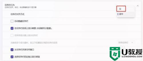 2、在任务栏行为里的任务栏对齐方式可以选择居左显示。